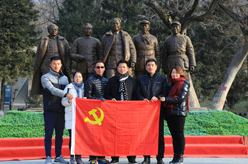 在五大书记的群雕下,公司党员们展开党旗,默默宣誓并拍照留念。“不忘初心,牢记使命”,大家纷纷表示,要把延安精神切切实实的落实到自己的工作中去。